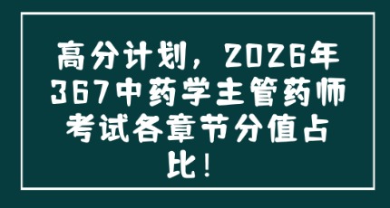 高分计划,2026年367中药学主管药师考试各章节分值占比!